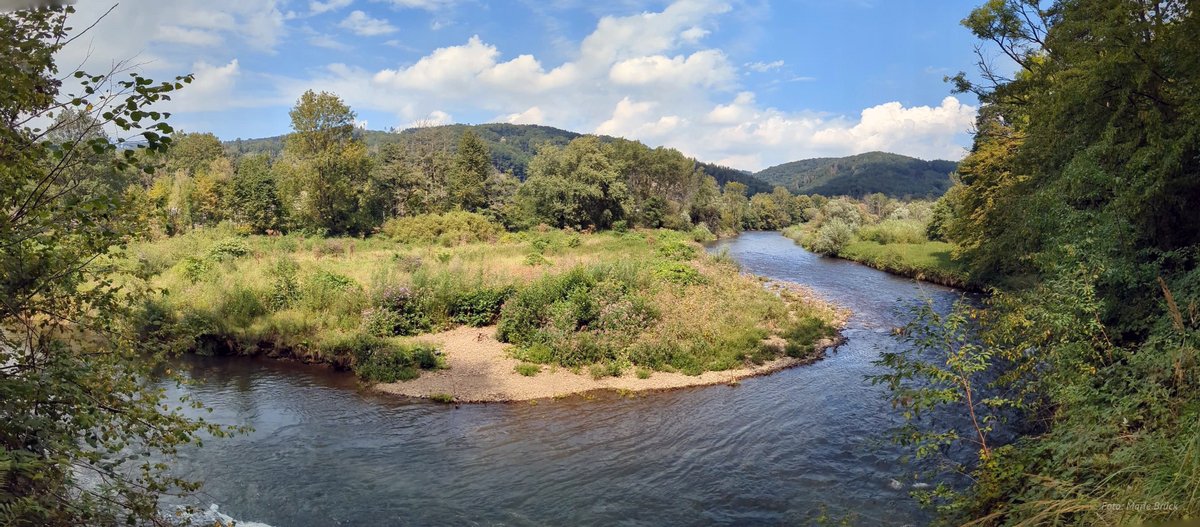 Bei einem Spaziergang am Grünscheider Wehr zeigten sich die beiden Biolog*innen beeindruckt von der wunderbaren Auenlandschaft, die nach dem Ablassen des Stauwassers entstanden ist. "Anderswo werden für Renaturierungen Millionen von Euro aufgewendet. Hier hat man einfach das Wehr geöffnet, und in kürzester Zeit ist eine vielfältige Flusslandschaft entstanden. Gut für die Pflanzen und Tiere, aber auch für den Hochwasserschutz."