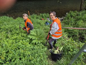 Umso wichtiger ist es, sie zu bekämpfen. Diese Aufgabe hat der NABU übernommen. Auch in Engelskirchen gibt es eine Herkulex-Gruppe. Sie müssen mit Schutzwesten, speziellen Spaten und Handschuhen zu Werke gehen. Die Pflanzen müssen mit Stumpf und Stiel ausgegraben werden und in Müllsäcken entsorgt werden, damit sie sich nicht noch stärker vermehren. Die Arbeit ist mühselig, auch weil die befallenen Stellen oft nur schwer zugänglich sind.